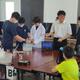 美術班がデザインしたパネルや一つ一つの石を入れた袋のデザインも紹介され、生徒会の生徒3名が代表して受け取りました。