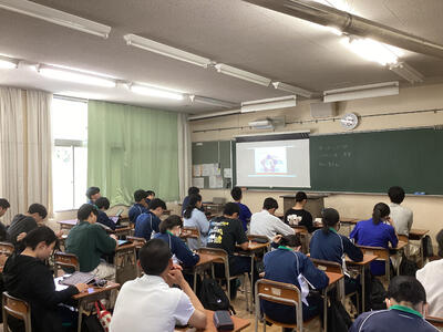 午前は両先生が揃って2年理数科対象の講義を行い、午後はシドニー研修参加者対象にWebster先生が話していただき、中学3年生対象に横山先生に講義していただきました。
