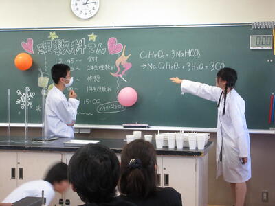 今年の鳩祭は、入場制限などは行われず、外部からの来客者が多く来校されました。科学の教室(理数科展)はその中の一つのイベントとして行われました。理科実験室にて満員の観客たちの前で、見せ方を工夫して様々な不思議現象をお見せして、驚いたり感心したりしてもらいました。何が起きているのか科学的な説明にも力を入れました。ここで楽しんだ子供たちが本校理数科を目指してくれると良いなぁと思います。