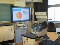 11月11日(木)に、1学年が取り組んでいる「一人一研究」に中間発表会をクラス内で実施しました。今年の1年生から、個人のタブレット端末を活用して探究活動を行っており、今回の中間発表でも、それぞれが作成してスライドを使ってこれまでの研究成果を説明していました。25日(木)には、他のクラスの生徒とグループを作って発表し合います。