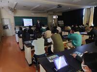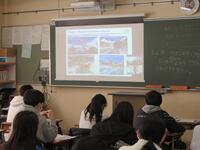 11月22日(月)に、1年理数科対象の「ジオサイエンス連携講座」を実施しました。信州大学特任教授の大塚勉先生をお招きし、「信州で地質学を学ぶこと」というテーマで講義をしていだたきました。地質調査の基礎(フィールドワークの方法など)から、地層の読み方、付加体の形成過程、日本列島のでき方、東アジア地域の地質など、地質学全般に関する内容を、多くのスライドを用いて説明していただいたほか、立体視鏡を用いた変動地形の読み方も教わりました。