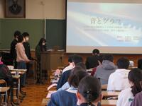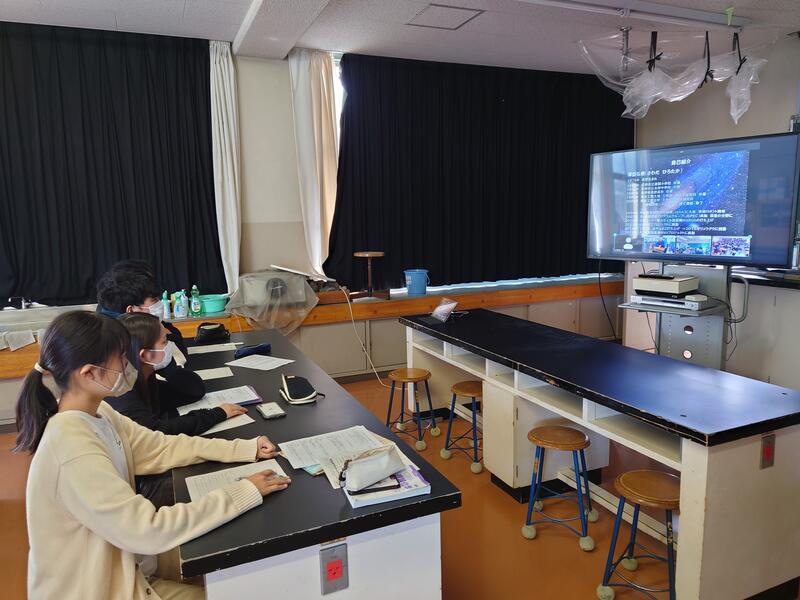11月2日(火)の放課後に、4回目となる「SSHミニフォーラム」を実施しました。今回は、第1回のミニフォーラムで「SDGs」をテーマに講義をしていただいた長野県立大学の秋葉芳江先生をお招きし、「2035年、私たちはどんな『タンパク質』を食べるのだろう」というテーマでさらに詳しくSDGsの取組について学びました。食料問題を取り上げ、人間に必要なタンパク質を、畜産の肉から取れなくなるかもしれず、代わりに大豆や昆虫食、培養肉といったものが今後必要になっていくといったお話をしていただきました。実際に現在売られているものを用意していただき手に取って確認することができました。最後は、参加生徒それぞれが、2035年にどんなタンパク質を食べているか考え、その理由をみんなで共有しました。(大学のゼミのように)
