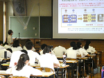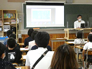 渡邉先生は、自然や農業を支えている生態系の要である土壌について研究されています。「土から考える農業と環境」と題した講義は、中学校の理科と社会(地理)が融合されたような内容であり、生徒たちは専門的な内容を自分の知識と結び付けながら熱心に話を聞いていました。