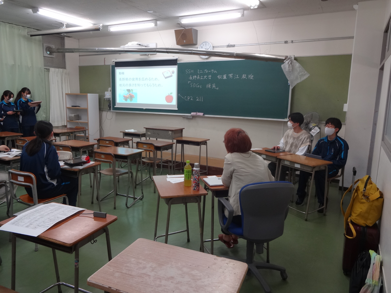 課題研究をより充実したものにするため、構想の段階で講師にオンラインで相談してアドバイスを受けるために、昨年度から始めた企画です。講師の大学生は、課題研究に対するアドバイスだけでなく、大学の様子や高校時代の時間の使い方、課題研究が大学受験にどのように繋がっていくか等、多面的な意見をプレゼンしてくれて、高校生活全般の意欲の向上につながっています。