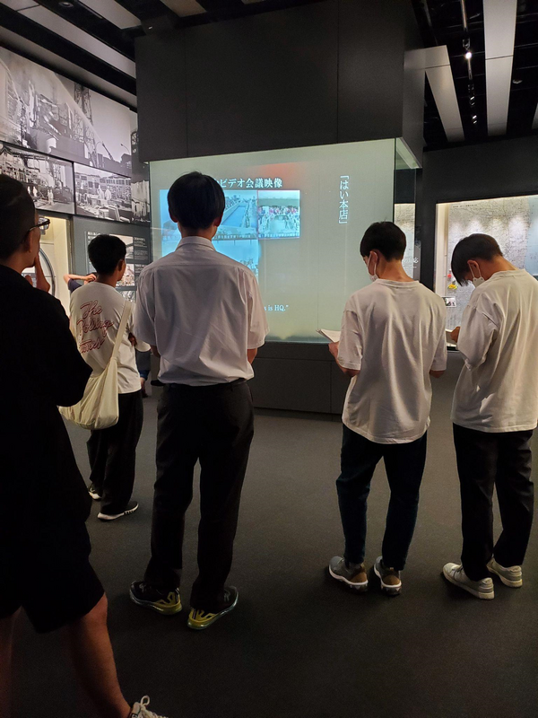 福島県立福島高等学校の生徒の皆さんとともに語り部の方の講話をお聞きしたのち、伝承館内を見学しました。語り部の方の「建物などかたちあるものを失った悲しみは再建に向けて努力すれば2、3年で解消できる。しかし、人間関係など、目には見えない大切なものを失ったものは取り戻すことが難しく、喪失感が年々大きくなっている」という言葉は、被災したすべての人々の気持ちを代弁したものであり、生徒たちの心に残ったようでした。伝承館は震災発生以前の福島第一原発の完成から時系列で展示物が配置されており、震災の事実、復興の現状・課題を追体感できる内容になっていました。
