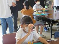 8月5日(木)の午前中に、屋代公民館を会場に「夏休み子ども科学教室」を実施しました。今度は、小学校高学年の児童を対象に「光の科学」をテーマに、簡易分光器を作成して、太陽の光を観察したり、偏光板を使って万華鏡を作ったりしました。この教室では、教員志望の高校3年生男子5名が先生となって、子供たちの指導をしました。