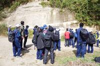 10月21日(木)に、1年理数科「ジオサイエンス」のプログラムとして、戸隠でのフィールドワーク実習を実施しました。8月に実施する予定でしたが、新型コロナの影響で延期となっていたものです。戸隠地質化石博物館学芸員の田辺さんの指導のもと、露頭の調査や化石の発掘など、フィールドワークを通して様々な事を学びました。クリノメーターやハンマーを使い、実際に地層を観察したり化石を掘ったり貴重な体験ができました。午後は博物館内で実習を行いました。