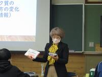 11月2日(火)の放課後に、4回目となる「SSHミニフォーラム」を実施しました。今回は、第1回のミニフォーラムで「SDGs」をテーマに講義をしていただいた長野県立大学の秋葉芳江先生をお招きし、「2035年、私たちはどんな『タンパク質』を食べるのだろう」というテーマでさらに詳しくSDGsの取組について学びました。食料問題を取り上げ、人間に必要なタンパク質を、畜産の肉から取れなくなるかもしれず、代わりに大豆や昆虫食、培養肉といったものが今後必要になっていくといったお話をしていただきました。実際に現在売られているものを用意していただき手に取って確認することができました。最後は、参加生徒それぞれが、2035年にどんなタンパク質を食べているか考え、その理由をみんなで共有しました。(大学のゼミのように)