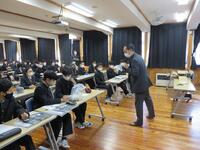 12月8日(水)の午後に、坂城中学校の理科室を会場に、「サイエンス交流会」を実施しました。参加したのは2年理数科の生徒9名で、2グループによる科学実験を行ない、参加した中学生も体験できる形で実施しました。気化熱を利用して氷の結晶を作ったり、一瞬でポットから煙(蒸気)がでたり、中学生も興味津々で目の前の化学変化を楽しんでいました。偏光版つかった万華鏡の作成も好評でした。最後に、坂城中学を卒業した理数科の生徒が、理数科の様子をスライドを使って説明し、中学生からの様々な質問に答えました。とても貴重な時間を過ごせたと思います。