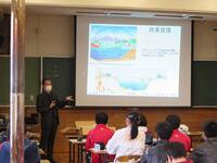 11月4日(木)に、2年理数科の「アカデミックサイエンス」として、東京大学大気海洋研究所の横山佑典教授をお招きし、気候変動に関する講義をしていただきました。毎年本校で講義をしていただき、米国海外研修でも横山先生にはお世話になっております。今年は、中学3年生が「SDGs」の取組みに力を入れていることもあり、中学3年生対象にも講義をしていだきました。ちょうど世界ではcop26(国連気候変動枠組条約第26回締約国会議)が開催されており、関心の高いお話を聴くことができました。また、今年ノーベル物理学賞に輝いた真鍋先生の話題にも触れていただき、同じ気候変動の研究でも、アプローチの仕方が違う話など、興味深い話ばかりでした。炭素循環について詳しく説明していただき、ただ単にCO2の増加を懸念するのではなく、CO2がどこから発生し、どんな作用をもたらしているCO2かを調べて対応する必要があることがわかりました。今後も気候変動について関心が高まると思いました。また、今回横山先生がここに来る前に奄美へ調査に訪れており、そこで採取した話題の「軽石」も実物を用意していただき手に取って見ることができました。確かにとても軽かったです。