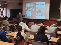 11月22日(月)に、1年理数科対象の「ジオサイエンス連携講座」を実施しました。信州大学特任教授の大塚勉先生をお招きし、「信州で地質学を学ぶこと」というテーマで講義をしていだたきました。地質調査の基礎(フィールドワークの方法など)から、地層の読み方、付加体の形成過程、日本列島のでき方、東アジア地域の地質など、地質学全般に関する内容を、多くのスライドを用いて説明していただいたほか、立体視鏡を用いた変動地形の読み方も教わりました。