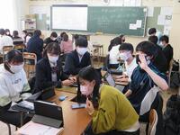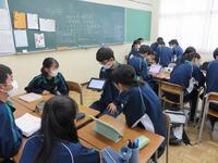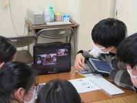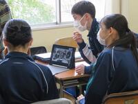1年のSSH科目である「国際情報」のプログラムとして、11月から台湾の高校とオンラインよる交流を始めました。11月24日(水)は、1組・4組・7組の生徒が、台北市立和平高級中学の生徒と、タブレット端末を使って交流しました。各クラス6つくらいのグループを作り、グループ単位で実施しました。初めての交流ということもあり、接続に戸惑う場面もありましたが、すべてのグループが相手のグループとつながることができ、英語による会話が飛び交っていました。9日にも3組と5組が、台北市私立幼華高級中等学校と私立新民高級中学と交流しています。