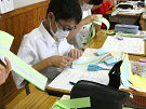 ↓和服の型紙を作りながら、和服について学んでいきました。