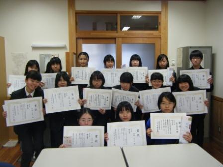 数学科の課題として夏期休業中に取り組んだ統計グラフコンクールの入賞者が表彰されました。「健康」「長野県」「未来」に視点を当てた作品が多く見られたのが印象的でした。