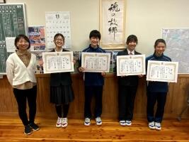 〇11月18日(金) 小さな親切作文コンクールの賞状が届きましたので、銀賞のSYさん、銅賞のYNaさん、YNoさん、MKさん、佳作のMHさんに賞状を代読してお渡ししました。応募数が非常に多いコンクールですので流石だと思います。おめでとうございます。みなさんのあったかい心が作文を通して伝わった証ですね。