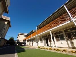 〇10月7日(木) この季節、晴れた日はとても気持ちのよい清々しさがあります。中庭(中学棟南側)の人工芝のところで”青空教室”をしている教科がありました。この人工芝のところ、現在10周年記念事業で有効活用できないか考えているところです。写真のように、時にはリラックスしながら学びやすいように、ウッドデスクやウッドチェアを置いたらどうかという案を中心に考案中です。10周年記念事業として、これから先も長く活用できるものがよいなぁと考えています。