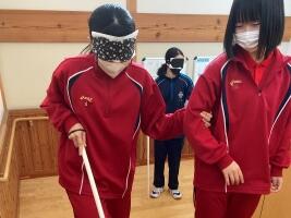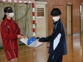 〇11月18日(金) 全校人権学習が行わました。県の社会福祉協議会や千曲市の社会福祉協議会、もと保健室の先生にご協力を頂き実施しました。ブラインドサッカー、ボッチャ、疑似体験、多様性講座と4つに分かれて体験をし、3校時は全校で振り返りをしました。発表の中で1年生のYCさんが「これまで自分が幸せならそれでよいと思っていたけれど、今日の人権学習でみんな一緒に幸せになれたらと考えた。」と全校の前で発信することができました。「すべての人が幸せに生きていくために大切なこと」をみなさん学年関係なく真剣に考えてくれました。自分の変容を自分で感じ取れる素晴らしい人権学習でした。