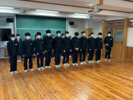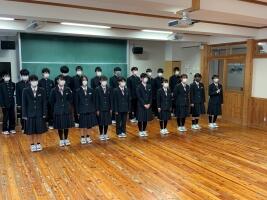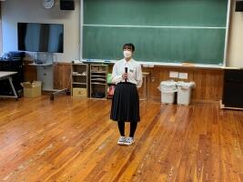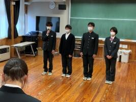 〇11月11日(金) 応援委員会による新人大会等壮行会が行われました。ハンドボール班、柔道班、バドミントンに出場するTMさん、科学の甲子園ジュニア全国大会に長野県選抜チームの一員として出場する科学班MKiさん、MKuさん、SMさん、FSさん。団体競技、個人競技はあるけれど、勝負の一瞬は、すべて個人。一人の勝負であること。そして、一人ではどうしようもないとき、仲間の力が大切になる時がくる話をしました。一人の力と、仲間の力。二つの力をしっかり引き出して、勝ち上がることを期待しています。