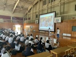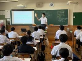 〇7月23日(土) 高校の中学生体験入学が行われ、多くの中学生が訪れました。M先生の数学の体験授業では、M先生の説明に興味をもってうなずいている姿が印象的でした。自ら求めて学ぼうした時の一つの姿だなぁと思いながら、自分が授業をしていた時のことを思い出しました。授業の最初に、生徒のみなさんとやり取りをしながら学習することを決定していきます。そのとき生徒がどんな目でどんな仕草でいるかが、1時間の授業が意欲的に取り組めるものになるかのポイントでした。今日参加された生徒の皆さんのような表情を見ながら授業ができるのって、きっと授業者としても楽しいだろうな…と感じました。全体説明では高校生の生徒会役員からの説明もあり、熱量をもって説明をしてくれました。
