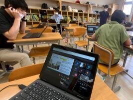 〇7月13日(水) 今回のオンライン授業・探究学習日では、いくつかの新しい試みがありました。一つ目は、長野地方気象台の3名の方がオンライン授業の様子を見に来られたこと。昨年度の2月のオンライン授業の際に、理科の「ブラ〇〇キ」で現地から授業を行ったつながりで、今回は学校に来ていただきました。このところの激しい雷雨の説明をしてもらいました。二つ目は、3時間目の「全校人権学習」。縦割りで1年から3年までいるグループでの学習でしたが、3年生が見事にグループをまとめ、2年生が丁寧にスライドをまとめてくれました。一人一人の事前準備が素晴らしく、今回の人権学習を大切にしてくれたみなさんの姿に感激しました。全校生徒と全職員がかかわってのオンライン授業。こういった一体感のある学びのカタチも面白いですね。画面越し話しかける先生方の表情も印象的でした。