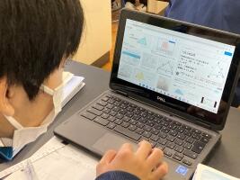 2年生の科学リテラシーの授業を覗いてみると、これまでに総合的な学習の時間で学習してきた千曲市と北陸を比較して分かったことや提案したいことをまとめていました。画用紙にまとめる様子からはどのように相手に伝えるかを大切にしていることが感じられました。クロムブックを活用してグラフ等に資料をまとめたり、これまでの学習の蓄積を引き出したりしてよりよい発表資料を作成しようとする姿から2月の総合文化発表会での発表が楽しみになりました。