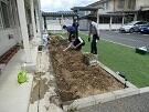 生徒がいない中、教員が何ができるか考え、片付けと次の栽培に備えた土づくりをしました。雷雨の前の暑い中、学校の環境を考えながらの作業でした。