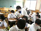 生徒の中に入り、様子をつかみ、問いかけながら授業が行われました。