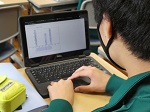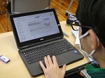 ↓隣の友だちと、クロムの画面を指さしながら交流。ノートと一緒。