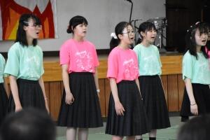〇7月3日(日) 第66回鳩祭最終日。体育館では合唱班の発表がありました。今年は1年生が大勢入班したため一段とハーモニーに厚みが出ました。ラストの「鷗」。個人的にも大好きな歌ですが、今年ばかりは世界情勢を思い出してしまいました。「ついに自由は彼らのものだ」そうなることを願いながら、合唱班の歌声を受け止めました。3棟では科学班の発表でした。大勢のおうちの方が見に来られていて大盛況でした。来年は場所を考えないといかないくらい大勢の方に見ていただきました。教室の展示も昨年度よりかなりにぎわっていましたが、毎年様々な工夫が出てきてびっくりしています。3日間の鳩祭で一番感じたのは、一人一人しっかりと輝ける存在だということ。大勢の方の輝きのエネルギーに勇気をもらいました。