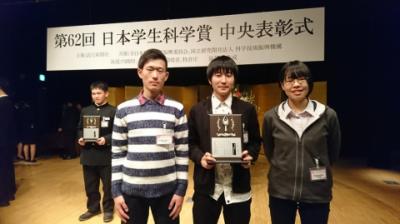 また、最終選考に残りませんでしたが、理化班の研究が入選三等を受賞しました。