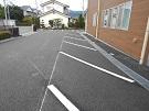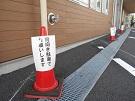 中学校玄関脇などに、駐車場の白いラインが引かれました。