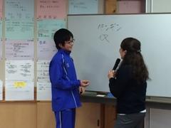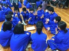1/12(火)、中学一年生が、福祉の学習として須坂市の手話サークルとの交流会を行いました。まず、手話による劇を見せていただき、基本的なあいさつや自分の名前の手話での表し方を習いました。その後は、手話の意味を考えるゲームや、ジェスチャーによる伝言ゲームなどを、グループに分かれて行いました。