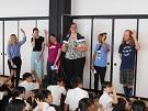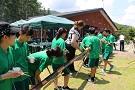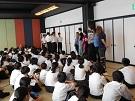 (下の写真は、壮行会で披露した、到着時のパフォーマンスの様子です)