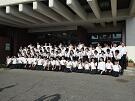 朝食をとり、学年で記念撮影をし、いざ金沢へ。