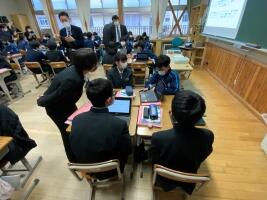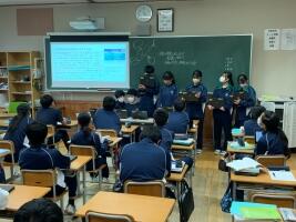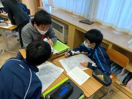 〇11月24日(木) 6時間目の授業では、様々なクラスで端末を使用しながら授業が展開されていました。大きく整理すれば、「調べる」「説明する」「整理する」場面でした。1年生の授業では、Aさんが自分が「調べている」ことを見せてくれました。「先生、北海道って第1位なんだって。」やや興奮気味だったのでどうしたか尋ねると、どうも北海道が1位だと思っていなかったようでした。予想とのずれが生み出す面白さですね。どんどん追究していく姿に、心の中で「がんばれー!」と応援しました。2年生は、調べたことを「説明する」授業。プレゼンで何をどう話すのか、その時に必要な画面は何か、お互いにその点についても評価しあうと面白いかもしれません。2年生のもう一クラスは、説明のための情報整理の時間でした。この情報整理次第で、次の時間の質が変わります。端末を使用する授業は、目をかけ、手をかけていないと、一人の学習になってしまいます。生徒が説明をしたことで、友とかかわりあいながらその技術を身に付けたり、自分の成長をメタ認知したりできます。授業は先生方の手によってまだまだ進化しますよ!