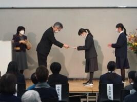 〇11月26日(土) あんずホールにて、本校THさんが「おもしろさらしな写真コンテスト」日本遺産賞(中学生部門)に入賞し、表彰式に参加しました。作品は、「地域探索~千曲市の宝さがし~」を実施した時に撮影した写真の中からお気に入りの一枚を選んで出品しました。写真に添えた一言は「千曲を見守る ちいさな背中」。審査評では「棚田の中にある大岩の姪石のお地蔵さんの背中に注目したところがユニークです。ひと言によって向こうの景色の広がりが想像できます。」との言葉をいただきました。4月からの学習でたくさんの千曲市の宝を見つけてきた1年生。学校では、見つけた宝をどのように守り・活かし・伝えていくか考えているところです。2月の総合文化発表会でどのような発表ができるか楽しみです。