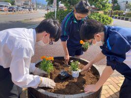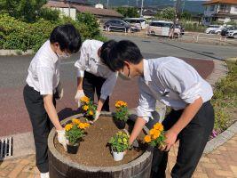〇6月5日(月)生徒会の時間、環境委員会の皆さんが、毎日お世話になっている屋代駅前の花壇に花を植えてくれました。委員長さん中心に3年生が手際よく指示を出してくれ、短い時間の中で担当花壇全てに花を植えることができました。駅前がパッと明るくなりました。