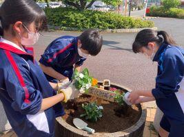 6月21日(水)中庭の花壇に新しい花が並びました。冬の花から、マリーゴールド、百日草、日々草など暑さにも強く、長く楽しめる花に植え替えです。環境委員の皆さんを中心に、朝読書までの短時間を使って、土を耕したり、花を植え替えたりしてくれました。今日は花植え。あっという間にきれいになっていたので驚いて、委員長さんに尋ねてみると「委員だけでなく周りにいた人たちも手伝ってくれた」とのこと。残念ながら、私はその場には立ち会えませんでしたが、皆で協力し、素敵な朝の時間となったに違いありません。