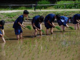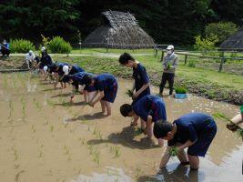 6月7日(水)3年生はクラスマッチ、1・2年生は1日特別日課の授業でした。2年生は探究学習で地域課題の解決策を考え、発信するという目標のもと、学習を進めています。午前中は千曲市役所から、午後はしなの鉄道から講師をお招きし、行政の取組や、しなの鉄道について学習をしました。生徒からは「観光を活性化させるために、行政と旅館などが連携をしていることはあるのか」「小諸から長野まで快速電車があれば、学生が助かる」などの質問や意見がでました。1年生は姨捨の田毎の月についてや特産のあんずについてなど4つのテーマに別れての探究学習を始めました。午前中はさらしなルネサンスの皆さんを講師に学習を行いました。生徒から「あんずを広く知ってもらうために、動画で調理方法を紹介したらどうか」「スマート農業を導入したら生産者の負担も減る」などの意見や提案がでました。午後は、森将軍塚古墳友の会の皆さんに教えていただきながら古代米の田植えをしました。7種類の古代米の稲をとてもきれいに植えることができ、生徒も「もっと伸びて色が出てきたところを見てみたい」と生長が楽しみなようです。地域の方々からたくさん学び、つながりがもてた1日でした。
