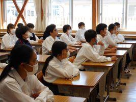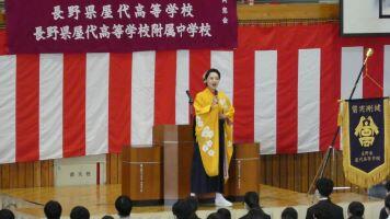 10月28日(土)屋代高校創立100周年記念式典があり、中学校からは各学級2名ずつ出席しました。式典の中で、生徒代表の高校生Tさんは「今あることに懸命に取り組んできた。そこには常にかけがえのない仲間がいた。」とコロナ禍においても、仲間とともに過ごした屋代高校での充実した日々について語ってくれました。また、記念講演では、国立感染症研究所の松岡佐織氏が「現在学んでいることが数年後、思いがけない時に役立つかもしれない」「自信がなくても飛び込んでみて」とご自身の経験から生徒たちにメッセージをくださいました。大変興味深いお話で、生徒たちも前のめりに耳を傾けていました。
