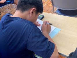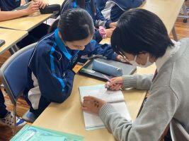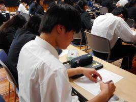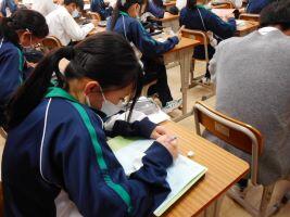 10月3日(火)2年生が先週実施された北陸研修旅行のまとめを行いました。はじめに、学年の先生から「北陸研修旅行が楽しかった人・学びがあった人」と問われるとたくさんの手が挙がりました。このようにふり返ることができたのは、事前の準備、当日の行動や心配りが素晴らしかったからだと思います。「しおり」を眺めながら、3日間をふり返る生徒たちの表情はとても嬉しそうでした。そして、旅行の成功の大きな要因は、関わったすべての方の支えだと思います。これから完成させるお礼状は、きっと「書きたい」お礼状です。ICTをこれだけ活用できるのに、なぜお礼状は手書きで書くのでしょう。いや、なぜ手書きで書きたくなるのでしょう。それは、この3日間で出会った物、出来事から質の高い本物の楽しさや学びを味わったからだと思います。そして何より、関わった人々の親切にふれたからだと思います。気持ちをお礼状に込めて大切に完成させていきます。