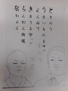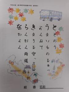 10月13日(金)3年生が修学旅行のしおりの読み合わせをしました。各自、しおりに係の名前や担任の先生からの注意事項を書き加え、空欄のあったしおりを完成させていきました。しおりの表紙・裏表紙はNさんとKさんが描いてくれました。二人とも「奈良や京都のイメージを絵にした。」そうで、力作です。古都の美しい街並みや荘厳な神社仏閣を見て、触れて、仲間と協力し、安全で楽しい旅にしましょう。