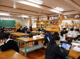 10月16日(月)今朝の自習室の様子です。授業の課題をしている生徒、自分の苦手なところを復習している生徒、それぞれが自分がやりたいと思う勉強をしています。3年生の中には修学旅行にちなんで、奈良や京都を舞台にしたストーリーで各教科の問題を作成し、友達に出題している生徒がいたり、2年生の中には、数学の応用問題ワークシートを作成し、黙々と解いている生徒たちがいます。教科書の範囲外を問題にしているそうで、4月から86枚もワークシートを解いたそうです。創造性豊かな附属中生の一面が見られます。自習室にいる職員もいるので、分からないところを質問している1年生もいました。継続は力なりですね!