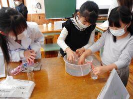 10月5日(木)今年度も附属中から「更埴科学作品展」に多くの作品が出品されました。その中で3年生のSさん、Fさんの「ダイラタンシー流体について」が長野県学生科学賞作品展覧会に、1年生のHさん、2年生のSさん、Tさんの「血糊を作ってみよう!」「インジゴカルミンの信号反応」が更埴科学作品展巡回展に出品されました。生徒いわく「研究も、人生もトライ アンド エラー(試行錯誤して問題解決をすること)」「研究は生きがい」とのこと。これからも、興味をもったこと、疑問に思ったことを追究し、高校でのSSHの活動につなげていって欲しいです。