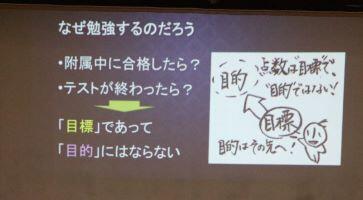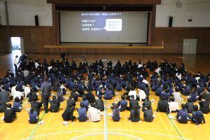 10月24日(火)全校学習オリエンテーションの様子を紹介します。全校が体育館に集まり、現在と今後の自分たちの学習への取り組みについて考えました。はじめに、キャリア教育主任のK先生から「なぜ学ぶのか?」問われ、みんなで考えました。受検を経て入学してきた一人ひとりの生徒のみなさんには、一人ひとりの理由がありました。その中で、「夢を叶えるため」という上田渉さん(オトバンク)の言葉が紹介されました。そして、「夢がないからやらないのか、やらないから夢が見つからないのか」と問われました。まだ夢が見つかっていないのなら、尚更、学びに向かい夢を見つけたいものです。後半は、家庭学習「GML」について考え、各教科から課題選択チャートが提示され、「量」+「質」を考えた「GML+plus」をスタートさせました。この全校学習オリエンテーションのように、この取組は全校生徒、全職員で試行錯誤しながら最善のものにしていければと思います。「歩くなら、一人よりみんなで」