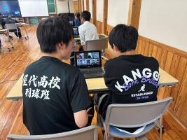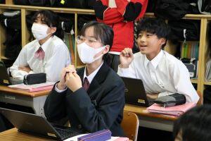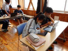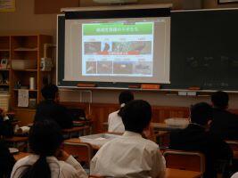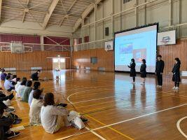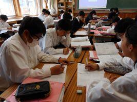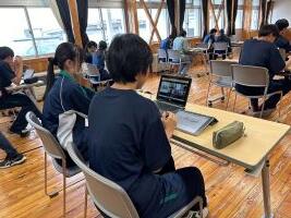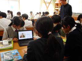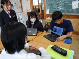 10月4日(金)今年度3回目のオンライン授業・探究学習の日でした。先生方も毎回様々な工夫をして、授業を配信しています。社会科の経済の学習では、T先生が、事前に地元企業の社長さんに、今の職業に就いた理由、仕事をしていて嬉しいこと、大変なことなどインタビューをした動画を紹介しました。また、2年生の道徳の授業では、先生方が役割演技をし、生徒が場面をイメージしやすいよう工夫していました。3年生の道徳、国語の授業では、関係する実際の場所で、臨場感を大切に英語の授業では、高校1年生に、自分自身のことや、自分の出身の市町村について紹介をしました。中学生が一生懸命、身振り手ぶりを交えながら自分自身について語ったり、用意したスライドを示したりする姿を、高校生が頷いたり‘Nice!’‘Good job!’と声をかけたり、質問をしたりして温かく聞いてくれました。以下、高校生の感想です。