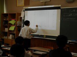 10月28日(月)1年生のクラスで、先生たちがお互いの授業から学ぶ授業研究会がありました。大勢の先生方に囲まれた中での授業でしたが、生徒はいつも通り自分の考えを表現したり、友達と情報を共有したり、楽しそうに学習に取り組んでいました。英語の授業では、文と文のつながりを考えて夏休み明けに新しく本校に着任したALTのジオ先生に附属中学校のことをより知ってもらうための紹介文を書きました。生徒は約15分間の中で構成を考えながら20文程の文章を書き上げました。半年間の学習の成果と生徒の成長を感じました。