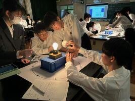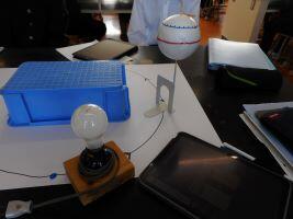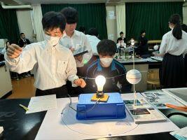 10月18日(金)3年生が理科の時間、「地球の運動と天体の動き」について「季節によって様々な違いが生じるのはなぜか?」について、太陽と地球に見立てたモデルを使って分析をしていました。生徒は、モデルを動かしながら、光のあたる角度、日のあたらない「夜」の長さを確認し、「季節によって時間が顕著に変わるのが分かる」と確認をしていました。実際に、自分たちで動かして考え、確認をした学習は記憶にも残ると思います。それにしてもM先生の手作りの教材がすごかった。