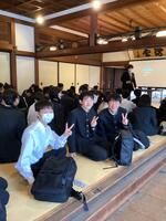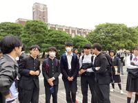 その後、京都大学に通う先輩からキャンパスツアーをして頂きました。6名の先輩から、中高時代の勉強のこと、寮生活のこと、サークルのことなど興味深いお話をたくさんして頂きました。先輩の話を聞き「勉強のやる気が増した」と言う生徒もいました。案内をしてくれた先輩の中には「修学旅行で京大を見学し、京大を目指した」と言う先輩もいました。数年後、今度は自分が後輩を案内している生徒がいるかもしれません。