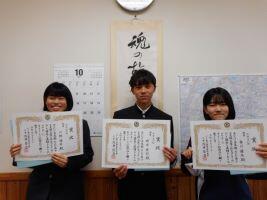 10月29日(火)夏休み明けに提出をした『小さな親切』運動 作文コンクールに2年生のKYさん、OKさん、3年生のKHさんの3名の生徒が入賞しました。生徒は駅で困っている人を助けている人を見た時の話や、台風による豪雨災害でのボランティアの話などを思い出して書いたそうです。以前、諏訪中央病院名誉院長の鎌田實先生が「99%は自分のためでも、残りの1%を誰かのために使ってみましょう」とおっしゃっていたことがありました。1%の「小さな親切」も全校が集まったら大きな力になりますね。